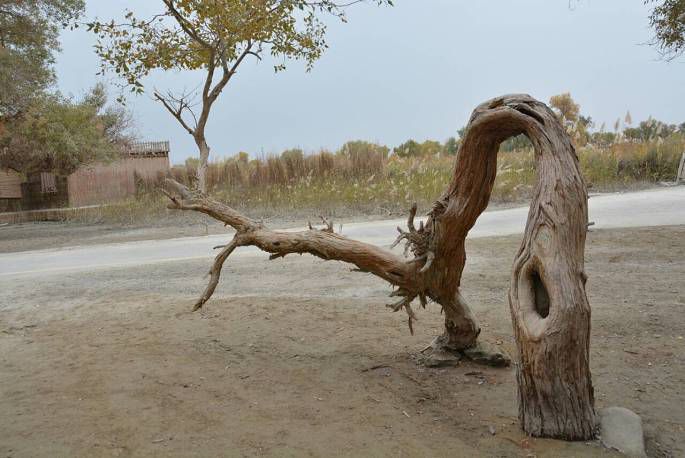 在罗布人村寨,细细观赏沙漠英雄树——胡杨,感受其生而一千年不死,死而一千年不倒,倒而一千年不朽,总算不枉此行,随后前往库尔勒。
