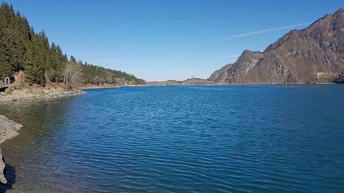 从观鱼台下来,天色还早,就在湖边走,非常奇怪,湖这边居然一点雪都没有,连地面都是干干的,北疆的天气真有点不好捉摸。喀纳斯湖东岸栈道徒步,喀纳斯湖码头、泰加林、羊背石、吐鲁克岩画,