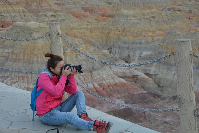 今天的目的地是五彩城,沿216国道一路向北寻觅—地球的调色板—五彩城,沿途远观天山山脉,前一天自己去天池已经走过的阜康一段路,天山北坡绿洲带、古尔班通古特沙漠一片荒凉,途经火烧山,下午抵五彩城,观赏丹霞美景,正是五彩城观落日的最佳地点和时间,见证了最美的那一刻。