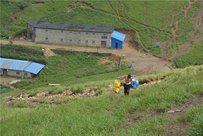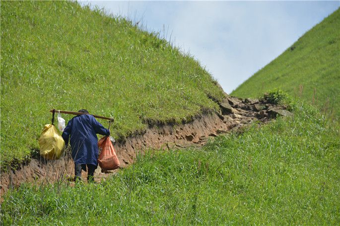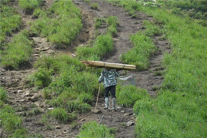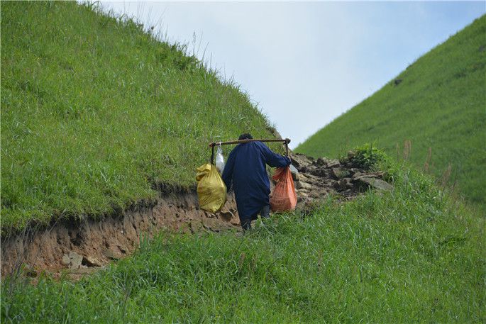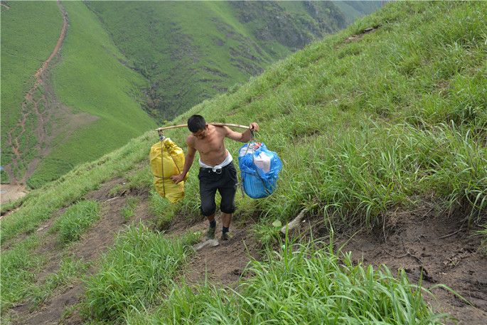 武功山的挑夫,上山四个半小时,每公斤酬金四元,一趟收入一百五到两百。