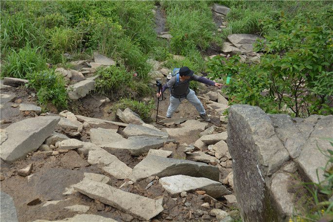 坡度大,石头路难走,但这是到武功山金顶方向必经之路,自己选择的路,再难也要走下去,经过几十分钟最终爬过去,在双龙客栈住下。