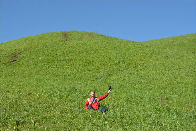在高山草甸行走,晴天太阳当空照,皮肤晒黑了,还好总算没有脱皮。