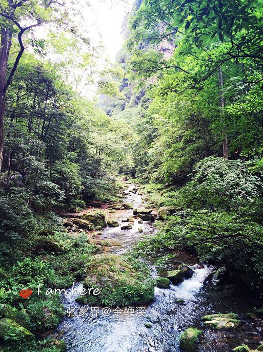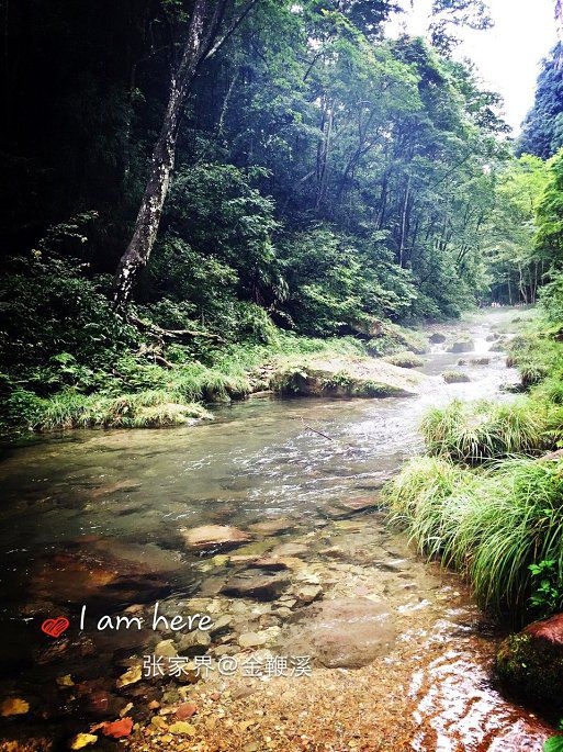 金鞭溪的溪水,格外清澈,从一片翠绿中涌出,清凉无比。