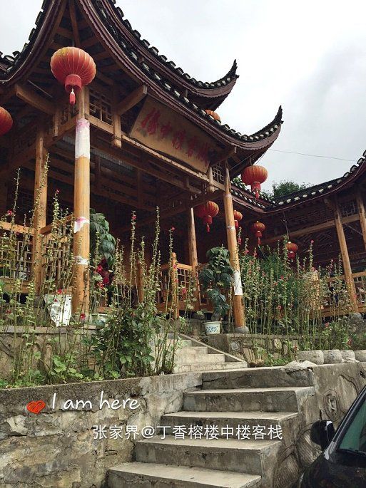 从袁家界做了好长一段环保车,我们来到了山顶的丁香榕村,这是我们提前定好的楼中楼客栈,终于可以歇歇了,好累呀。。。