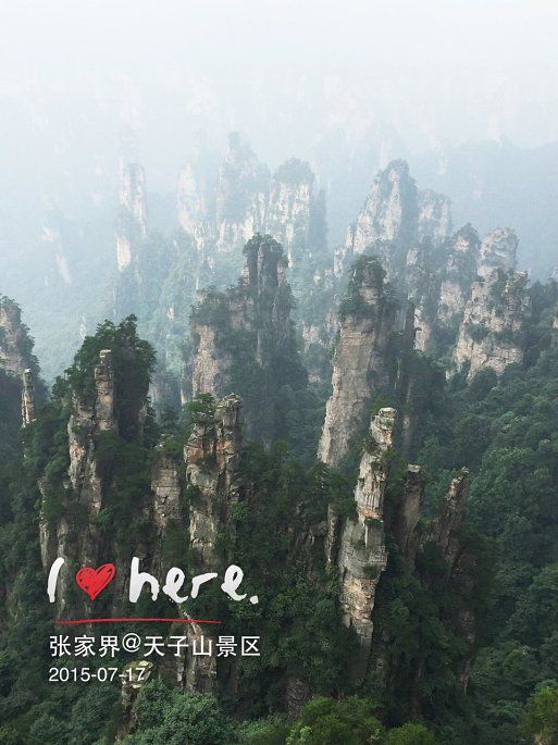 我最最喜欢云青岩观景平台,视野开阔,气象万千。。。和袁家界的峰林相比,天子山上的石峰形态上没有那样多姿,但显得更为鬼斧刀削,挺拔险峻,直愣愣地拔地而起。