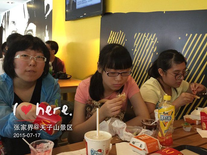 据说天子山上有亚洲海拔最高最大的麦当劳,于是作为吃货的我们怎能不慕名前往。果然叹为观止,上下两层,面积超大。只是感觉面积和生意有点儿成反比,或许是我们来得太早了。。。