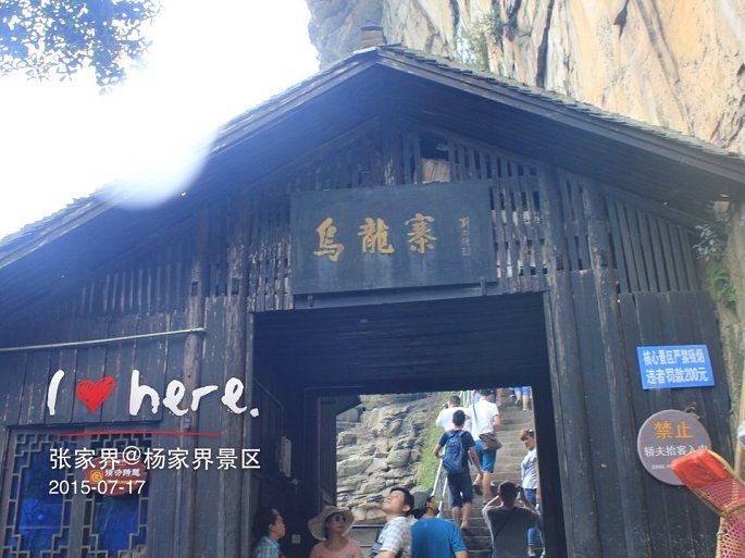 从袁家界吃过午饭,我们坐了三十多分钟的环保车直接到了杨家界的索道上站,准备去乌龙寨土匪窝抓土匪。。。这里是张家界最险也最好玩,挑战胆量和体力的地方,早就向往着了。。。。。可惜我的小心脏不给力,砰砰跳的厉害,还透不过气来,只好放弃了,在寨外坐等她们回来,有些小遗憾:(