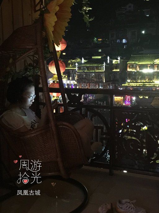 夜晚的凤凰,喧闹得不一般。。。只因城外江边一排全是酒吧。各种闹腾在将尽子夜时归于平静,我在摇椅中轻轻摇曳,享受这一刻美妙时光,要是有杯红酒在手就圆满了:)