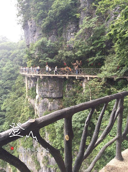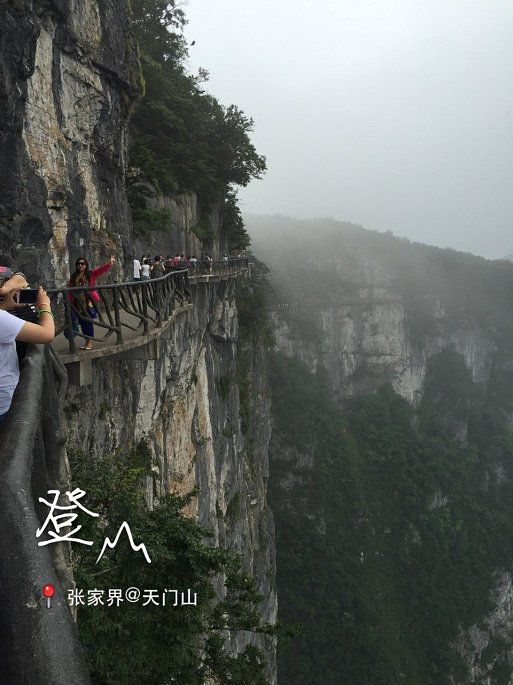 远远看到玻璃栈道,嵌在陡峭的绝壁上,腿软了没?:)