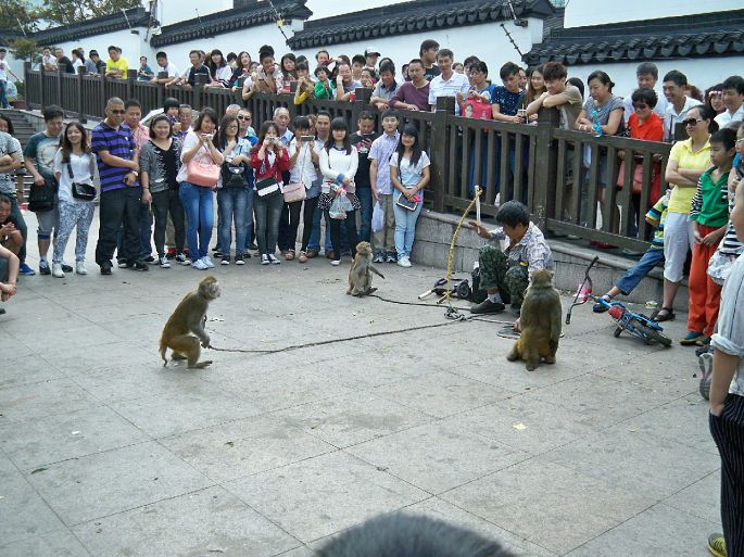七宝古镇今年1月2日去,很清静的修建的很优雅~~10月3日又去咯.呀~~呀~~是人挤人的进去,看不到店好容易到了欣赏的地方了.开始走走,看看食品.以前清静优雅的地方,拍照,玩儿的人带来热情不错呵.看到猴儿的活动,我感兴趣了.