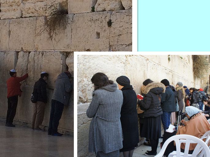 哭墙是以色列的国魂,被犹太人视为信仰和团结的象征。哭墙分隔成两个区域,中间以屏风相隔,男左女右分别在石墙前祈祷。