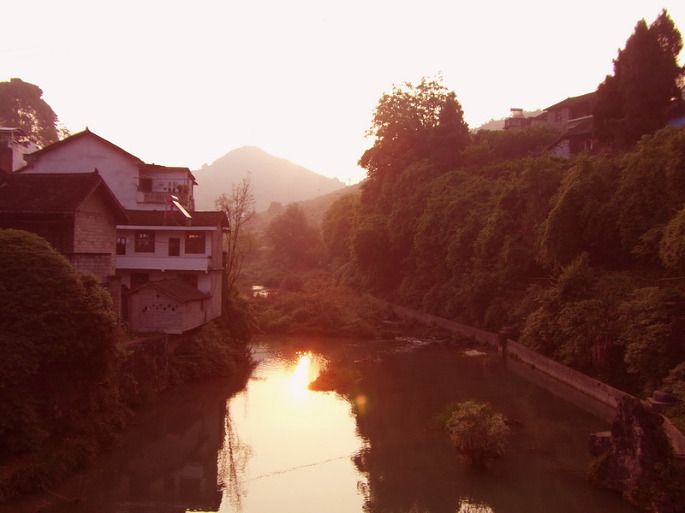 清晨,日出的景象清丽鲜光。行走在青石板路上,清香的空气沁入肺腑,整个山就像撒了香水一般。