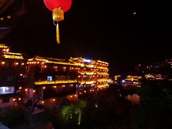 住在镇上,夜晚虽然飞瀑仍就潺潺在耳,伴着远方清幽歌乐。在这跳动的橙红灯笼和水天湛蓝的画布上,明丽的夜幕却给人一种十分静谧的感觉,让人安然入睡。