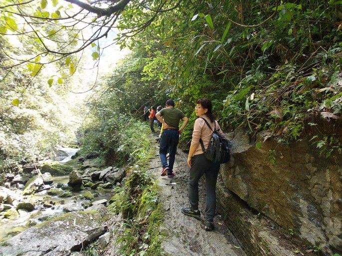 不知是否地导为了鼓励大家,编出一个八十岁老太太都穿过此峡的传说,我觉得故事有点夸张,虽非真正意义上的徒手攀岩,但绝对有那种险奇刺激的味道,况且还有轰鸣的飞瀑相伴。岩石湿滑,一不小心就会铸成千古恨。