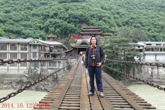 早上九点开始离开磨西去泸定,天还下着雨,11点到泸定,花10元买门票,在铁索桥上走了一趟,拍照留念,算是到此一游吧!