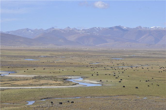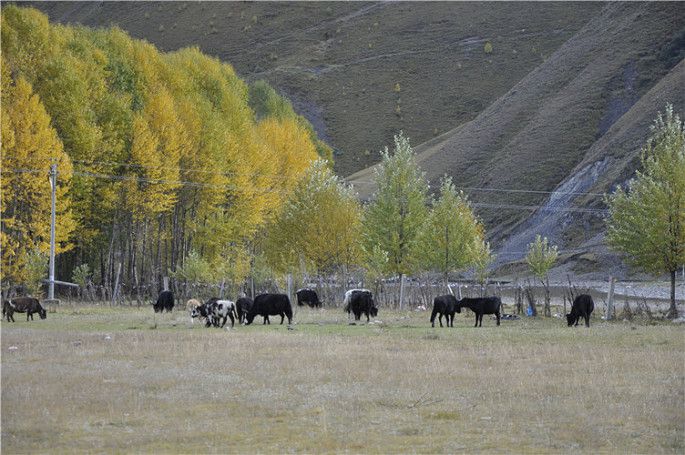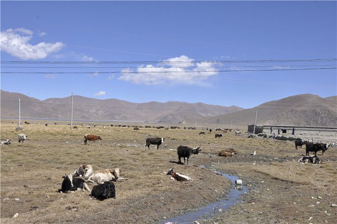 从拉萨到日喀则就属于后藏地区,金秋十月正是收获季节,藏民正在收割青稞,好一派丰收景象,收割机也用上了,一路上到处牛羊成群,想来生活也富裕吧。