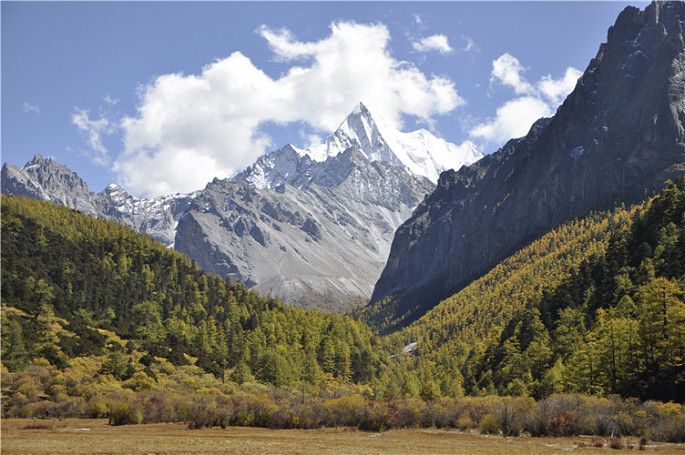 稻城三神山,最先看到的是仙乃日,海拔6032米。