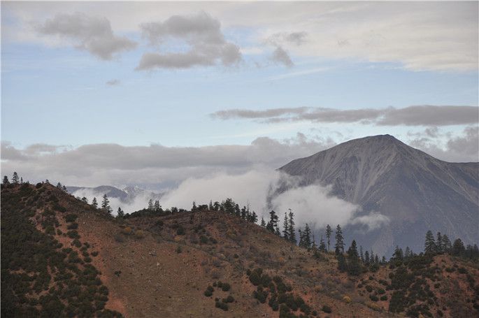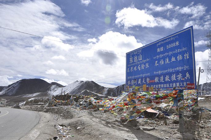 早上从芒康出发,翻过5008米海拔的西藏左贡境内的东达山垭口,山顶风很大,很冷,想拍照留影也没有机会,东达山是川藏南线第一座超5000米的高山,有武警部队树立的写着东达山的道路标志牌。
