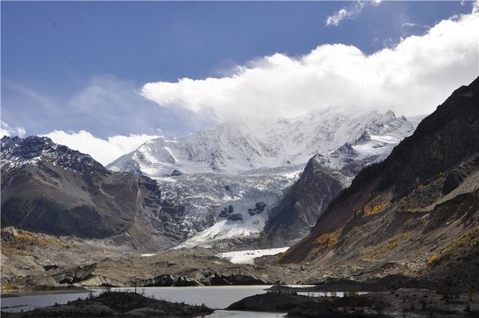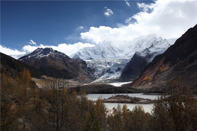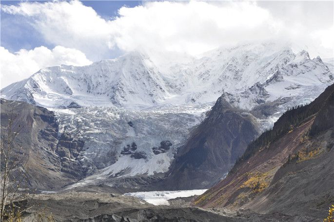 米堆冰川在波密,是一座低海拔冰川,4000多米就是冰川带,雪光闪耀,景色秀美,形态各异,天气好,阳光灿烂,可以近距离观看。