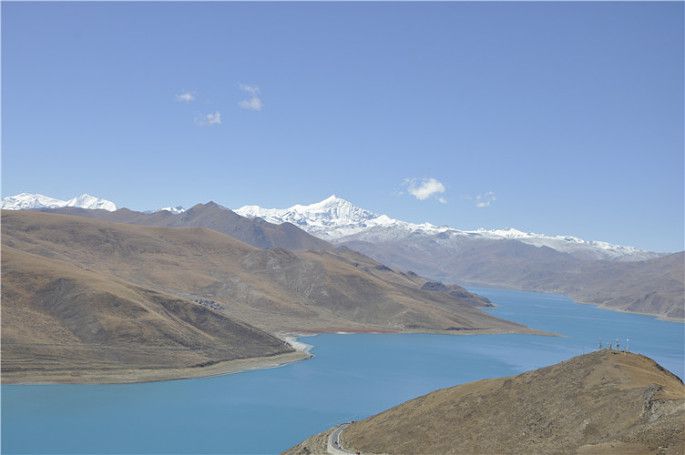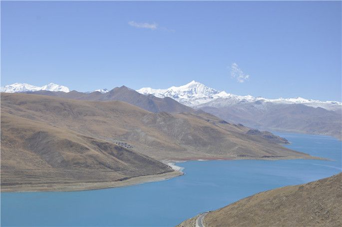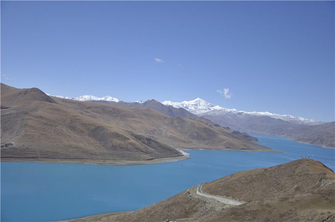 羊湖又叫羊卓雍湖,在浪子卡县,是西藏三大圣湖之一,蓝色的湖水蓝蓝的天,雪山倒影在湖中,真是美得不能再美了,简直是美的视角享受。