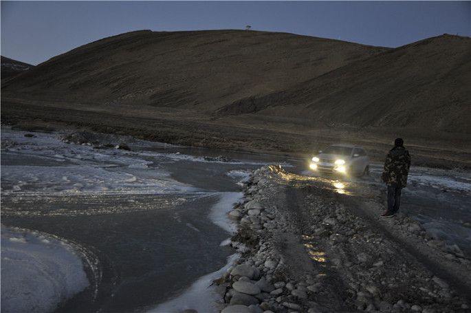 早上一早从定日出发,直奔珠峰大本营,100公里搓衣板山路,一路颠簸,司机开车摸黑赶路,一个不小心汽车在趟过小冰河时差点爬不上来。