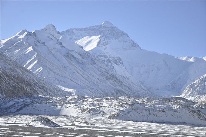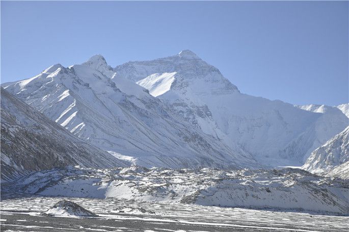 站在观景台望过去,8842米的珠峰触手可及,并不遥远,前面一片开阔地就是禁区,有武警把守,没有登珠峰许可证是不能过去。