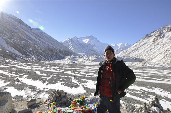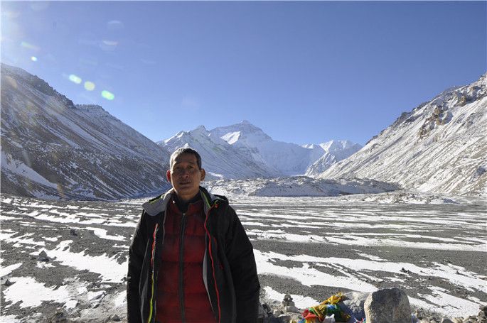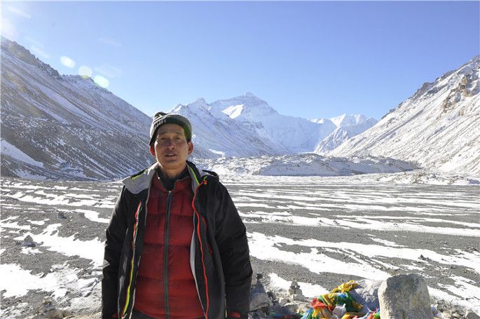 我站立地方是一个小山包,观景台吧,8842米的世界第一高峰,珠峰就在眼前。
