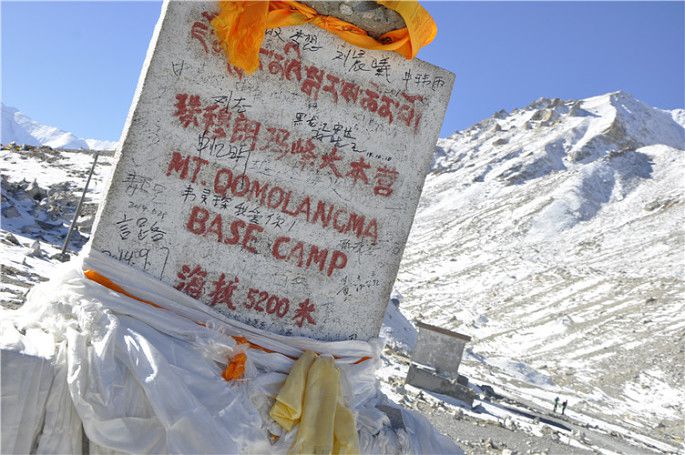 珠峰大本营标志石碑拍照,留下历史性的珍贵回忆。