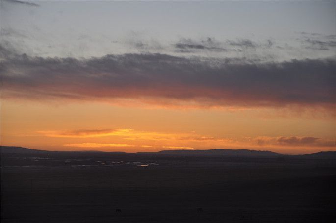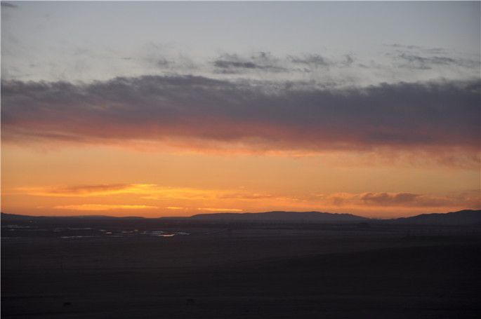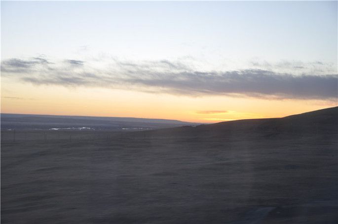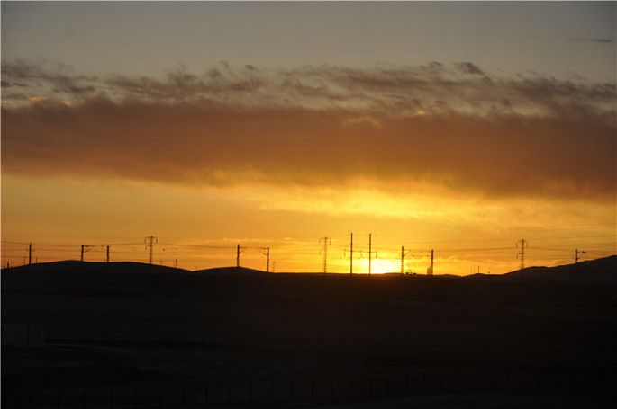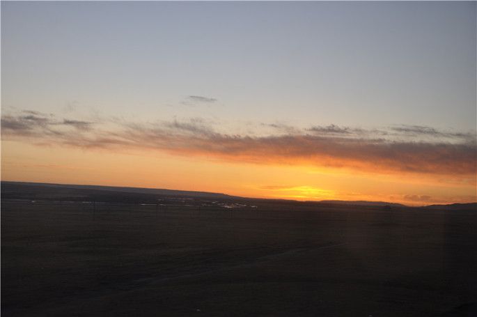 青藏铁路火车上观赏唐古拉山落日的晚霞。
