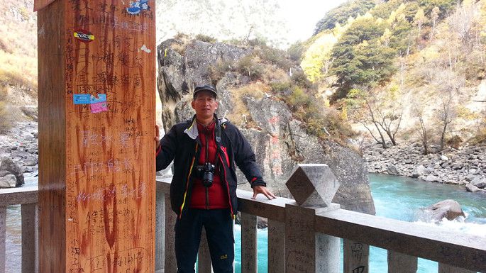 过了金沙江大桥就是真正意义上的西藏地界,在桥上川藏分界线牌牌下面大家都拍照留影,留下318川藏线上珍贵的照片。