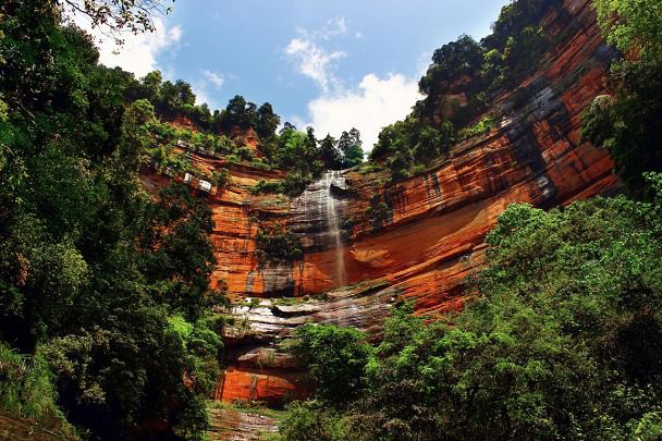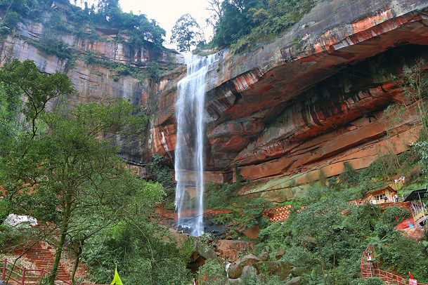 赤水大瀑布高76米,宽80米,被誉为“长江丹霞第一瀑”。画坛泰斗刘海粟老先生题誉为"空谷佳人",中科院专家评价为"神州丹霞瀑布奇观"。