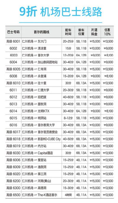 另外值得一提的是,买卡时能获赠一套当前最新的韩国各大免税店的折扣券,服务点赞!附上仁川机场巴士中文说明,给大家参考。用这张卡上车刷卡“哔”~~直接9折,开心!