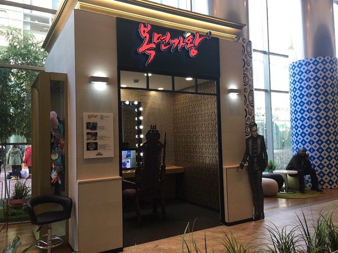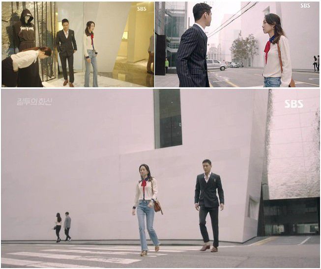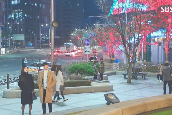剧情回顾1:全剧高潮之一,第9集中男一李华信(曹政奭饰)亲眼目睹了自己喜欢的表娜丽(孔孝真饰)与财阀三世死党高正元彼此确认了对方的真心后甜蜜拥吻,伤心后独自黯然离去。这一幕便是在BOONTHESHOP清潭前拍摄的。
