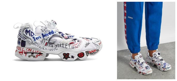 然后!在休闲运动鞋这里要划重点了,下面这双锐步REEBOK合作款‘2016 Vetements X Reebok Insta Pump Fury’作为Vetements合作系列的代表单品,令各路球鞋玩家趋之若鹜!鞋面像极了墙上的涂鸦,设计太独特太有个性了~~