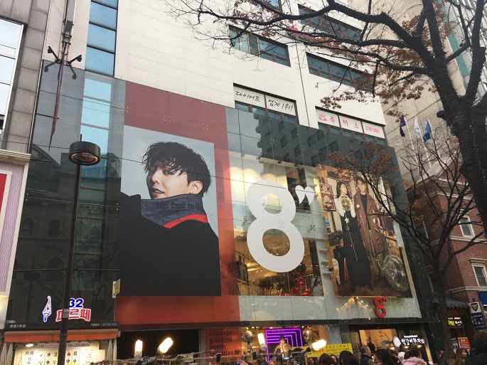 又见GD大海报,原来是走到了韩国服饰品牌8Second明洞店,我的天,这是得有多火~~果然是广告=人气!既然来了,索性进去逛逛喽~