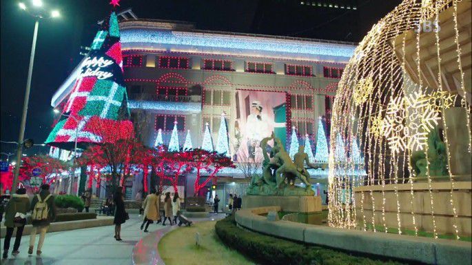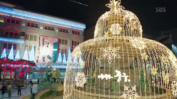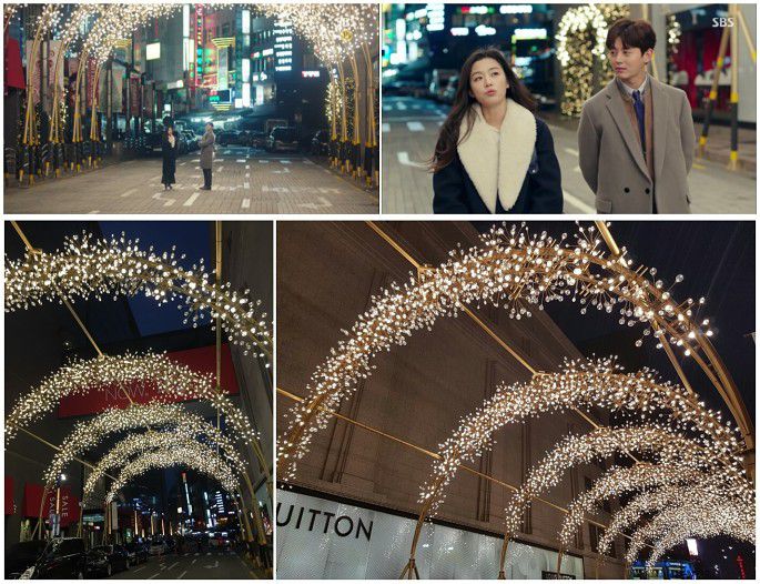 哈哈,就是剧中全女神和许俊宰的哥哥散步的地方!这条装饰有繁星一般的拱形灯饰的街道就位于新世界百货明洞总店楼前面,很是梦幻,特别适合闺蜜和情侣拍照。