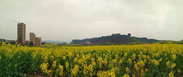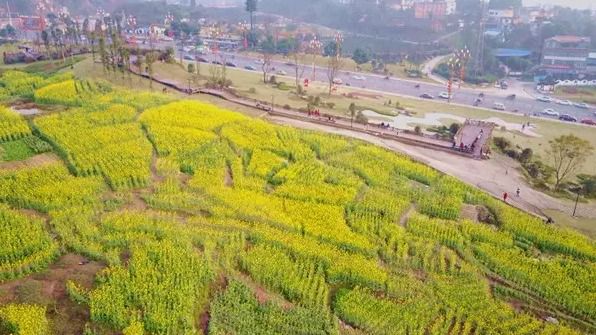 走累了,到旁边的护国公园内歇一歇,美丽的油菜花海与公园相互映衬,俨然一副现代与田园交融的美丽画卷。