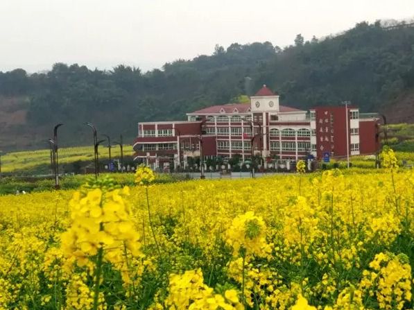 花海中还隐藏着一处学校,在这里的小盆友,每天在油菜花香中学习,也是超级幸福的一件事儿。