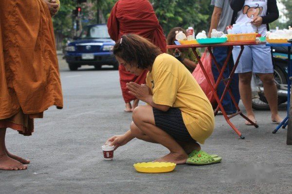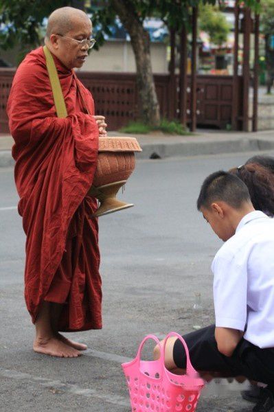 而泰国信奉的是小乘佛教,僧侣过午不食,所以需要在每天清晨走出寺庙接受布施。