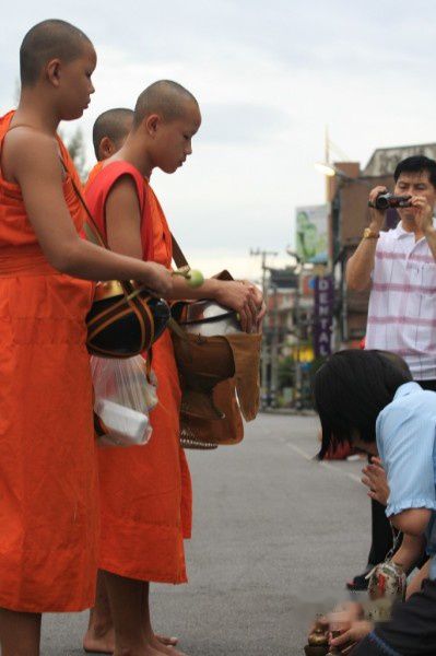 在物欲横流,烦扰不堪的世界上,有什么比一颗虔诚的心更让人心灵平静呢?在清迈,每天早晨,民众都自发地来到古城街头为前来化缘的僧侣布施。