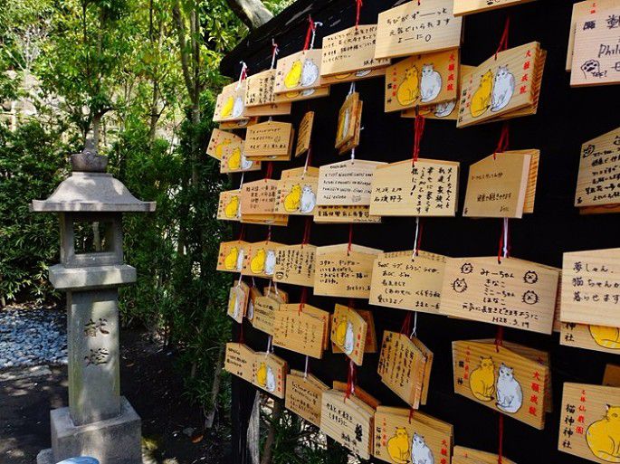 仙岩园内有一个专门供奉猫神的迷你神社。据传,16世纪末期,奉命出兵朝鲜的九州萨摩大名岛津义弘带了7只小猫随军,依靠他们眼睛的变化来推算时间。这个祠堂就是为了这些小猫而建。神社的许愿牌上也画上了小猫的图案,很可爱。