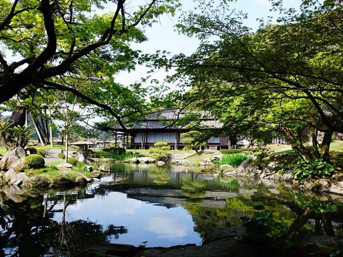 第一站仙岩园,仙岩园曾是萨摩藩藩主岛津氏的别墅和庭园,在园林建造风格和艺术上借鉴了中国园林借景的建筑技巧,仿佛樱岛与锦江湾也成园林的一部分,因此也有天下名园的美誉。