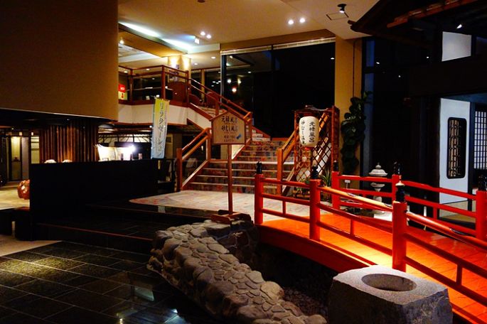 消食后,回到房间取来温泉用的大毛巾, 准备去泡汤咯。旅馆内的元禄温泉和松云温泉都是免费使用的,元禄温泉按室内和室外分为两层,室内的温泉还带有一点江户时代的历史感。公共温泉是不能拍照的,所以想看的亲自来体会吧!哈哈