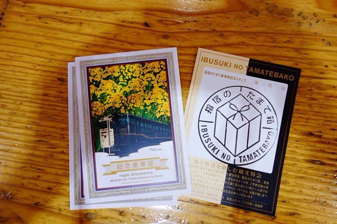 今天从指宿返回鹿儿岛、再转战雾岛。再一次坐指宿玉手箱号,还是觉得它好可爱啊!车上提供各种零食饮料,还有指宿玉手箱的周边纪念品,让人很想下手啊!,车厢里还提供免费的盖章用纸和专用章,盖一个留作纪念!
