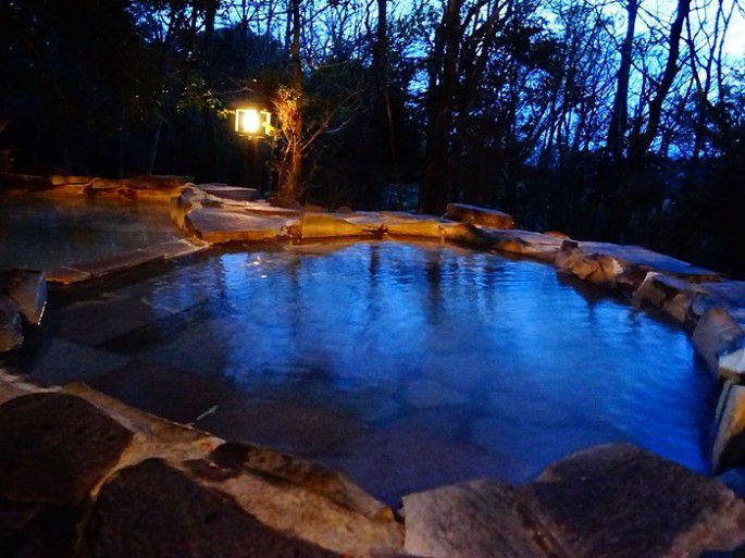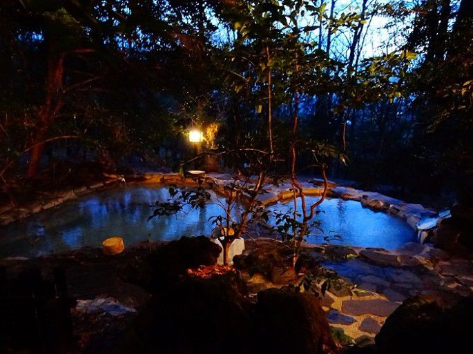 除了免费的大浴场外,旅行人山庄最美的温泉就是租借式的私汤。酒店内分为三个私汤,需要提前在酒店前台预约时间。也许是我到的晚了,只预约到了晚上的私汤