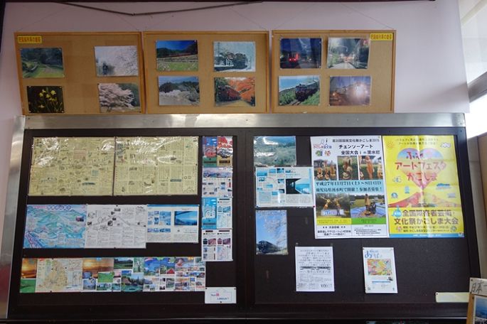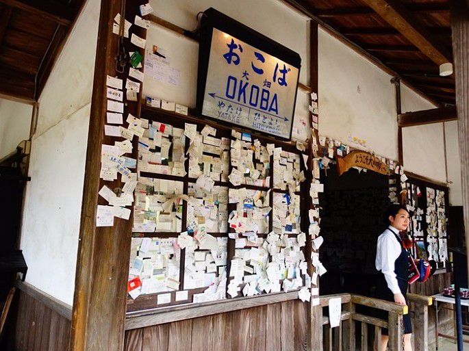 大畑站的窗框墙壁上横七竖八地贴满了来自世界各地游客的名片,据说把名片贴在这里,今后就能出人头地。