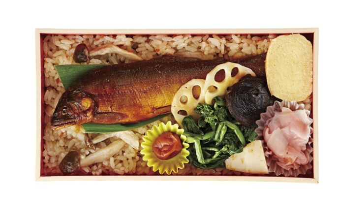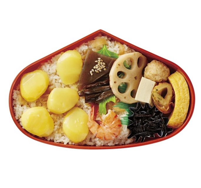 上车前预定了一份人气的便当——栗子饭。便当中栗子、鱼丸、鸡蛋等美味色香味俱全,栗子状的便当盒也十分考究。