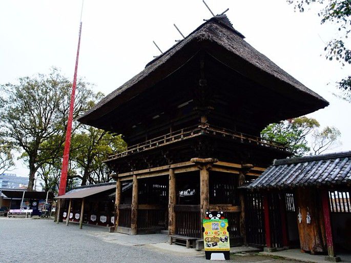 首先来到了距离车站最近的著名景点,青井阿苏神社。这个距今有400多年的历史的神社,是日本唯一一座被指定为国宝的茅草屋顶寺院神社茅草覆盖的屋顶呈人字型,如同双手合十一般在日本这么多神社之中也算少见。