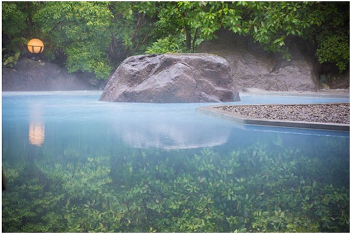 几经辗转终于抵达由布院今天入住由布院庄屋之馆,之所以选择它是因为这里有天蓝色的温泉!据说刚刚涌出来的温泉也是无色透明的,但是温泉中特含的成分接触到空气发生反应,形成了这种独特的颜色。