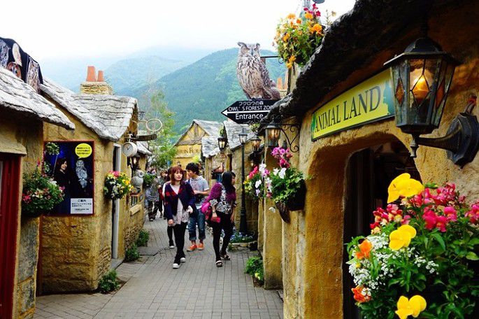 由布院像是从漫画中搬出来的小镇,有很多有意思的小店。胖嘟嘟的龙猫、色彩斑斓的复古小车、还有结合了吉卜力的日式幻想风格与英国乡村风的小小村庄,路上的风景总能给我惊喜。